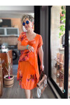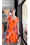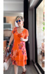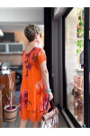 Cello İtalyan Zambak Desenli Elbise Turuncu