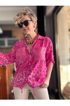 Cento Leopar Pul Detaylı Tasarım Gömlek Fuşya