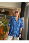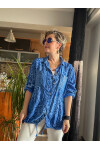 Cento Leopar Pul Detaylı Tasarım Gömlek Saks Mavi