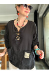 Chiquitita Tasarım File Cep Detay Bluz Siyah