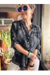 Citta Şal Yaprak Desen İtalyan Gömlek Siyah