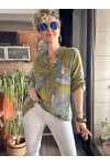 Citta Şal Yaprak Desen İtalyan Gömlek Yağ Yeşil