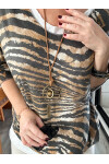 Cupra Zebra Desen Kolyeli İtalyan Bluz Triko