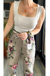 Delli İtalyan Çiçek Desen Vizon Keten Pantolon