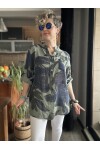 Desci Yaprak Gül Desen İtalyan Gömlek Haki