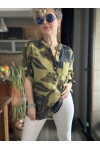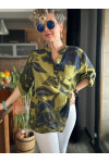 Desci Yaprak Gül Desen İtalyan Gömlek Yağ Yeşil