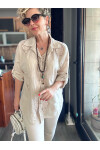 Disse İtalyan Fisto Oval Çiçek Desen Gömlek Bej