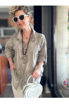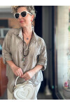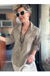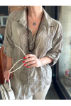 Disse İtalyan Fisto Oval Çiçek Desen Gömlek Vizon