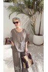 Doğal keten dokusunun ferahlığını ışıltılı yıldız detaylarıyla buluşturan Dolce, modern ve enerjik bir stil sunan özel bir ikili takımdır. Bluz ve pantolon üzerindeki payet yıldız motifleri tasarıma hareket katarken, %100 keten kumaşı gün boyu konfor sağlar.