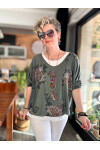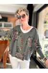 Ento Çiçek Desen Kolyeli İtalyan Bluz Haki