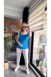 ES Çivit Mavi Kare Yaka Dört Mevsim Triko Atlet