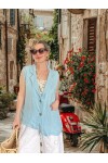 Estee %100 Linen Asimetrik Kesim Blazer Yelek Bebe Mavi