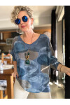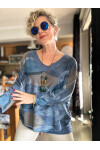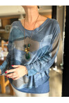 Etaly Sedef Desen Kolyeli İtalyan Bluz İndigo