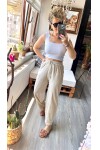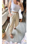 Etno Çıma Detay Bel Lastik Tasarım Pantolon Bej