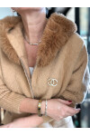 Etrusco İthal Angora Kürk Kapşonlu Çizgi Detay Ceket Ekru: İpeksi Yumuşaklık ve Hafif Lüks