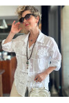 Bu gömlek sadece bir kıyafet değil; zarif detaylarla işlenmiş bir stil ifadesi. İnce fisto işlemeleri, çiçek desenleriyle buluşarak romantik bir hava yaratırken; İtalyan kalıp sayesinde her bedende feminen ve zarif bir duruş sağlar.