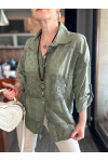 Eyyo İtalyan Fisto Kare Çiçek Desen Gömlek Haki