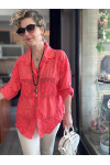 Eyyo İtalyan Fisto Kare Çiçek Desen Gömlek Mercan