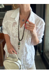 Bu gömlek sadece bir kıyafet değil; zarif detaylarla işlenmiş bir stil ifadesi. İnce fisto işlemeleri, çiçek desenleriyle buluşarak romantik bir hava yaratırken; İtalyan kalıp sayesinde her bedende feminen ve zarif bir duruş sağlar.