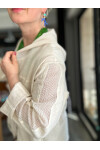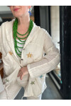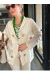 Feliz Yıldız File Detay Pul İşleme Hırka Ceket Ekru
