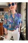 Felli Zambak Desen Desenli İtalyan Gömlek Turkuaz