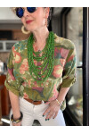 Felli Zambak Desen Desenli İtalyan Gömlek Yağ Yeşil