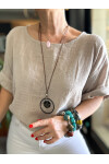 Fezza İthal Kolyeli Tasarım Bluz Beige