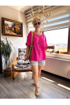 Fezza İthal Kolyeli Tasarım Bluz Fuşya