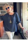 Fezza İthal Kolyeli Tasarım Bluz Lacivert