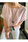 Fezza İthal Kolyeli Tasarım Bluz Toz Pembe