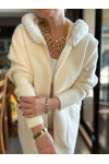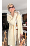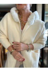 Flori İthal Angora Kürk Kapşonlu Ceket Ekru: İpeksi Yumuşaklık ve Hafif Lüks