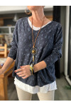 Fuggi Leopar Desen Kolyeli İtalyan Bluz Navy
