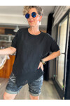 Getto Asimetrik Kesim File Detay Bluz Siyah