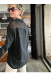 Jalli Tasarım Sırt File Detay Gömlek Siyah