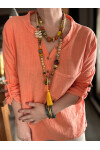 Jalli Tasarım Sırt File Detay Gömlek Turuncu