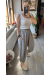 Jimmy V Paça Detaylı Bel Lastik Pamuk Pantalon Açık Gri