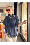 Julli İtalyan Gömlekli Bluz Triko Takım Lacivert
