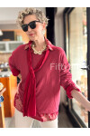 Julli İtalyan Gömlekli Bluz Triko Takım Vişne
