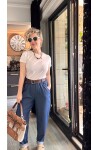 Kessi İtalyan Balon Kemerli Pantolon Tencel Lacivert