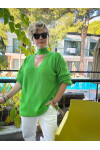 Kisas Balıkçı Detaylı Merserize Triko Yeşil