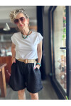 Lenasso İtalyan Stil Hasır Kemerli Keten Şort Siyah