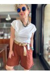 Lenasso İtalyan Stil Hasır Kemerli Keten Şort Tarçın