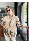 Lenna Leopar Desen Tasarım Gömlek Bluz Bej