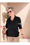 Lerso Polo Yaka Tasarım Triko Bluz Siyah