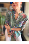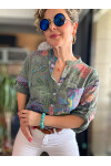 Lessi Yeni Zambak Desen Haki Desenli İtalyan Gömlek