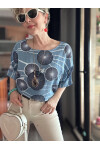 Limmo Desenli  İthal Kolyeli Tasarım Bluz İndigo