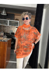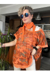 Mamma Mia Fularlı Etek Pul Kamuflaj Bluz Turuncu