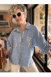 Marnis İtalyan Vip Pul Payet Detay Gömlek Ceket Mavi
