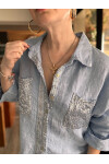 Zarafetin ışıltıyla buluştuğu bu özel koleksiyon gömlek, sofistike stil anlayışınızı yansıtmanız için tasarlandı.doğal pamuk ve keten karışımı kumaşıyla maksimum konfor sunarken, cep üzerindeki ince işçilikle uygulanmış pul ve payet detaylarıyla fark yaratıyor.
