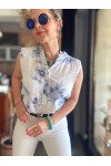 Massa Lotus Desen Sıfır Kol İtalyan Bluz Beyaz